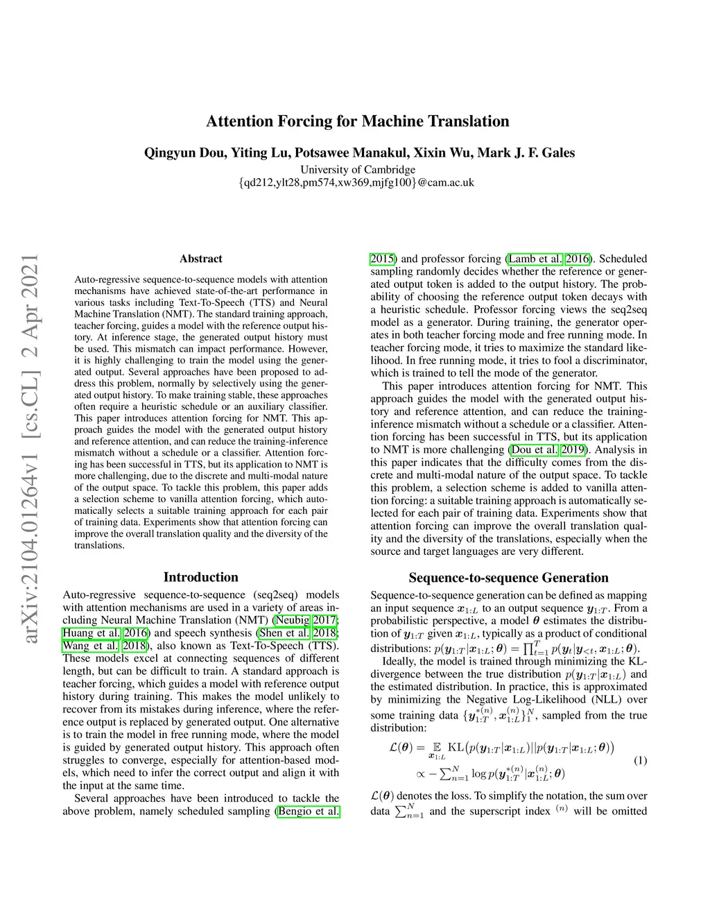 Attention Forcing for Machine Translation
