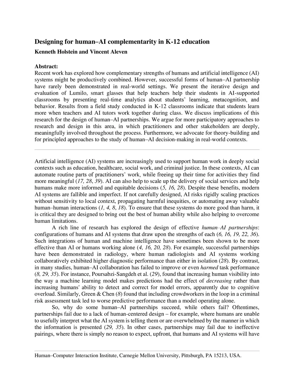 Designing for human-AI complementarity in K-12 education