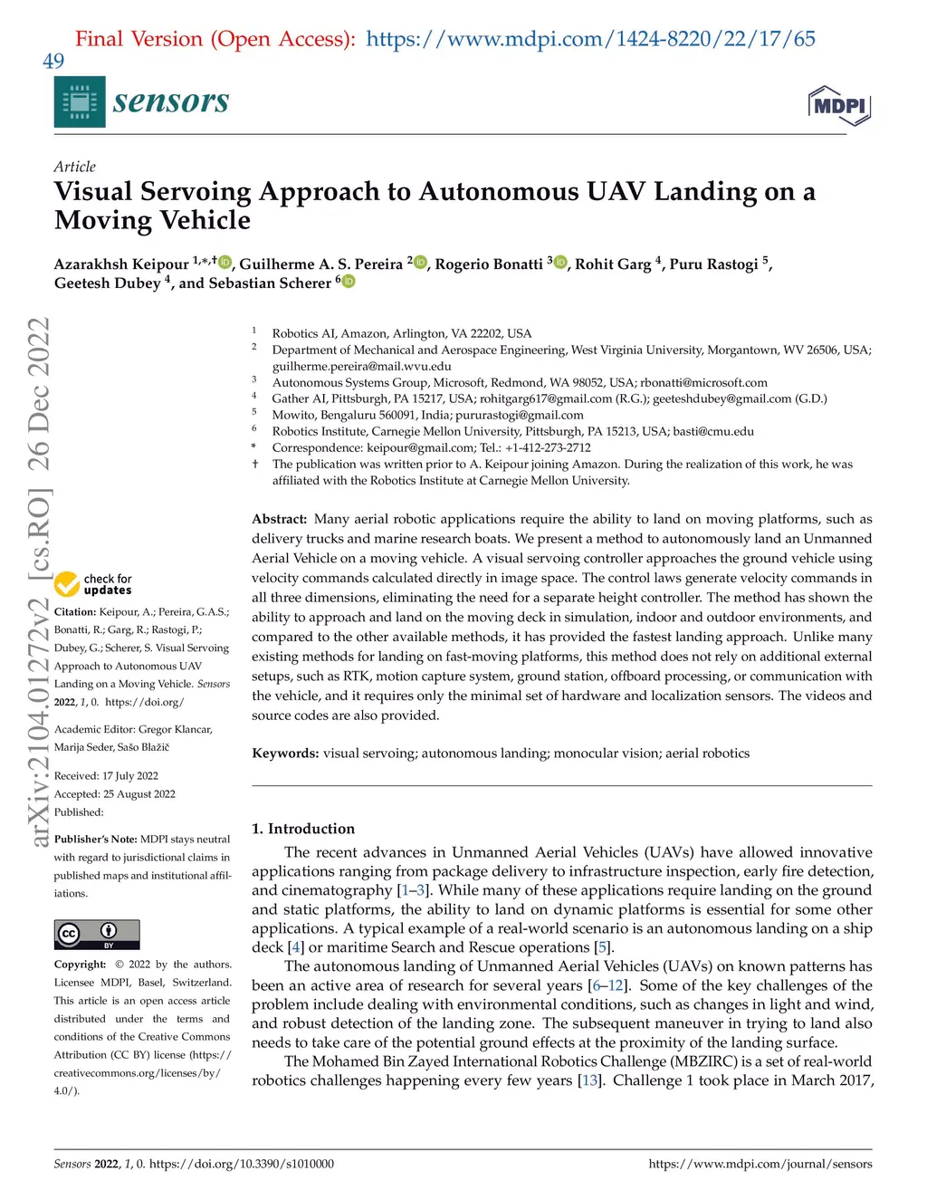 Visual Servoing Approach for Autonomous UAV Landing on a Moving Vehicle