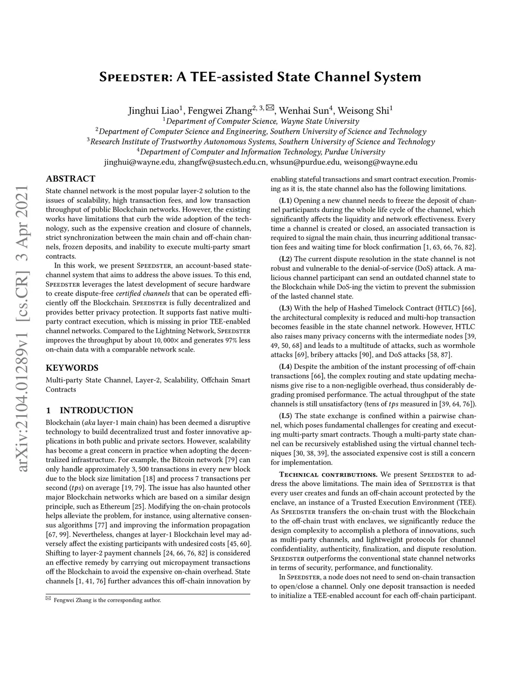 State channel network is the most popular layer-2 solution to theissues of scalability, high transaction fees, and low transaction throughput of public Blockchain networks. However, the existing works have limitations that curb the wide adoption of the technology, such as the expensive creation and closure of channels, strict synchronization between the main chain and off-chain channels, frozen deposits, and inability to execute multi-party smart contracts. In this work, we present Speedster, an account-based state-channel system that aims to address the above issues. To this end, Speedster leverages the latest development of secure hardware to create dispute-free certified channels that can be operated efficiently off the Blockchain. Speedster is fully decentralized and provides better privacy protection. It supports fast native multi-party contract execution, which is missing in prior TEE-enabled channel networks. Compared to the Lightning Network, Speedster improves the throughput by about 10,000X and generates 97% less on-chain data with a comparable network scale.