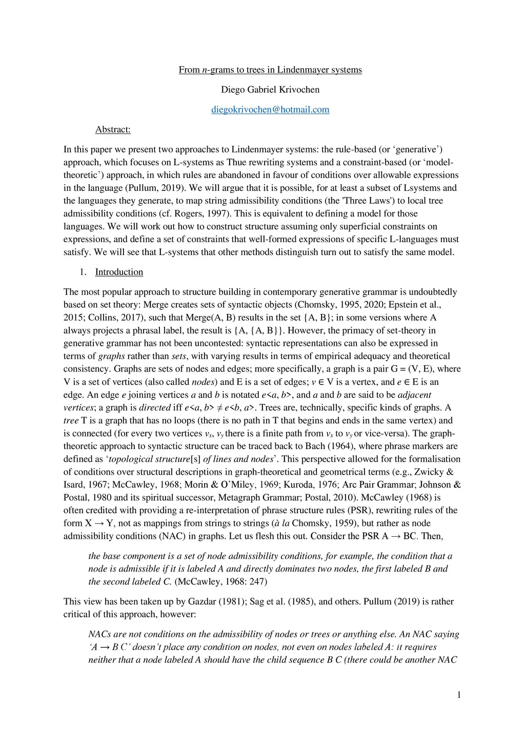 In this paper we present two approaches to Lindenmayer systems: the rule-based (or generative) approach, which focuses on L-systems as Thue rewriting systems and a constraint-based (or model-theoretic) approach, in which rules are abandoned in favour of conditions over allowable expressions in the language (Pullum, 2019). We will argue that it is possible, for at least a subset of L-systems and the languages they generate, to map string admissibility conditions (the 'Three Laws') to local tree admissibility conditions (cf. Rogers, 1997). This is equivalent to defining a model for those languages. We will work out how to construct structure assuming only superficial constraints on expressions, and define a set of constraints that well-formed expressions of specific L-languages must satisfy. We will see that L-systems that other methods distinguish turn out to satisfy the same model.