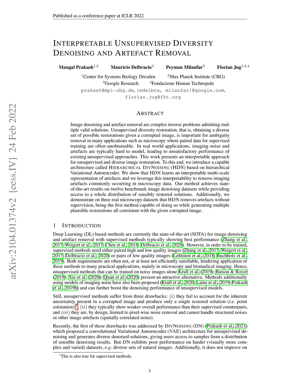 Interpretable Unsupervised Diversity Denoising and Artefact Removal