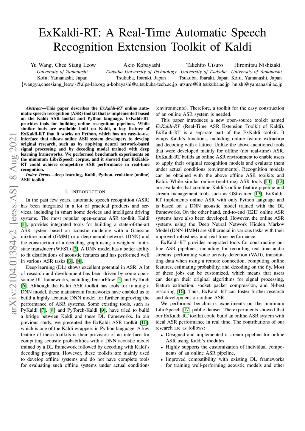 ExKaldi-RT: A Real-Time Automatic Speech Recognition Extension Toolkit
