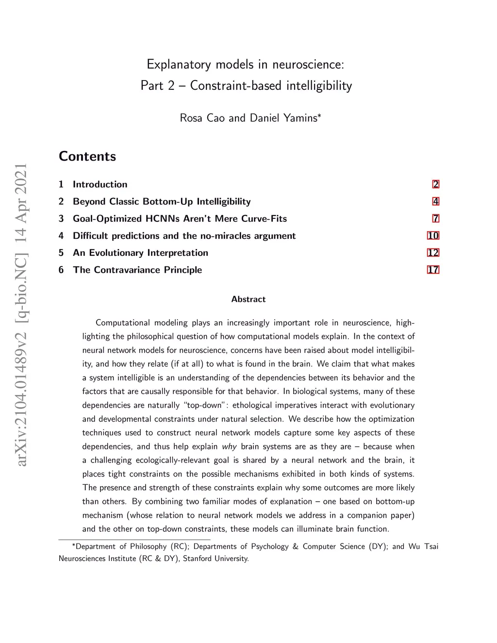 Computational modeling plays an increasingly important role in neuroscience, highlighting the philosophical question of how computational models explain. In the context of neural network models for neuroscience, concerns have been raised about model intelligibility, and how they relate (if at all) to what is found in the brain. We claim that what makes a system intelligible is an understanding of the dependencies between its behavior and the factors that are causally responsible for that behavior. In biological systems, many of these dependencies are naturally "top-down": ethological imperatives interact with evolutionary and developmental constraints under natural selection. We describe how the optimization techniques used to construct NN models capture some key aspects of these dependencies, and thus help explain why brain systems are as they are -- because when a challenging ecologically-relevant goal is shared by a NN and the brain, it places tight constraints on the possible mechanisms exhibited in both kinds of systems. By combining two familiar modes of explanation -- one based on bottom-up mechanism (whose relation to neural network models we address in a companion paper) and the other on top-down constraints, these models illuminate brain function.