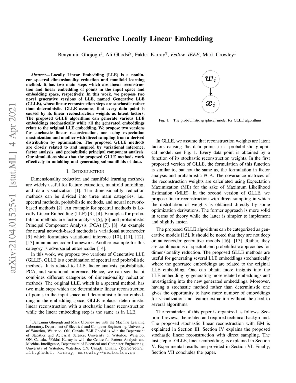 Generative Locally Linear Embedding