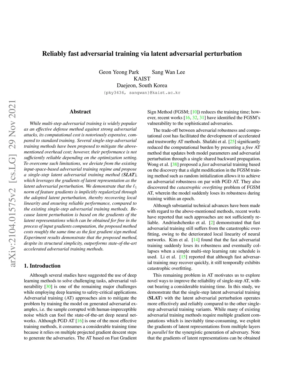 Reliably fast adversarial training via latent adversarial perturbation