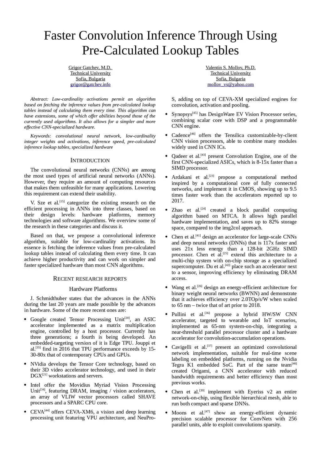 Low-cardinality activations permit an algorithm based on fetching the inference values from pre-calculated lookup tables instead of calculating them every time. This algorithm can have extensions, some of which offer abilities beyond those of the currently used algorithms. It also allows for a simpler and more effective CNN-specialized hardware.