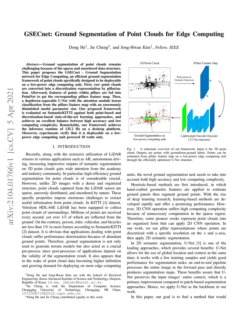 GSECnet: Ground Segmentation of Point Clouds for Edge Computing