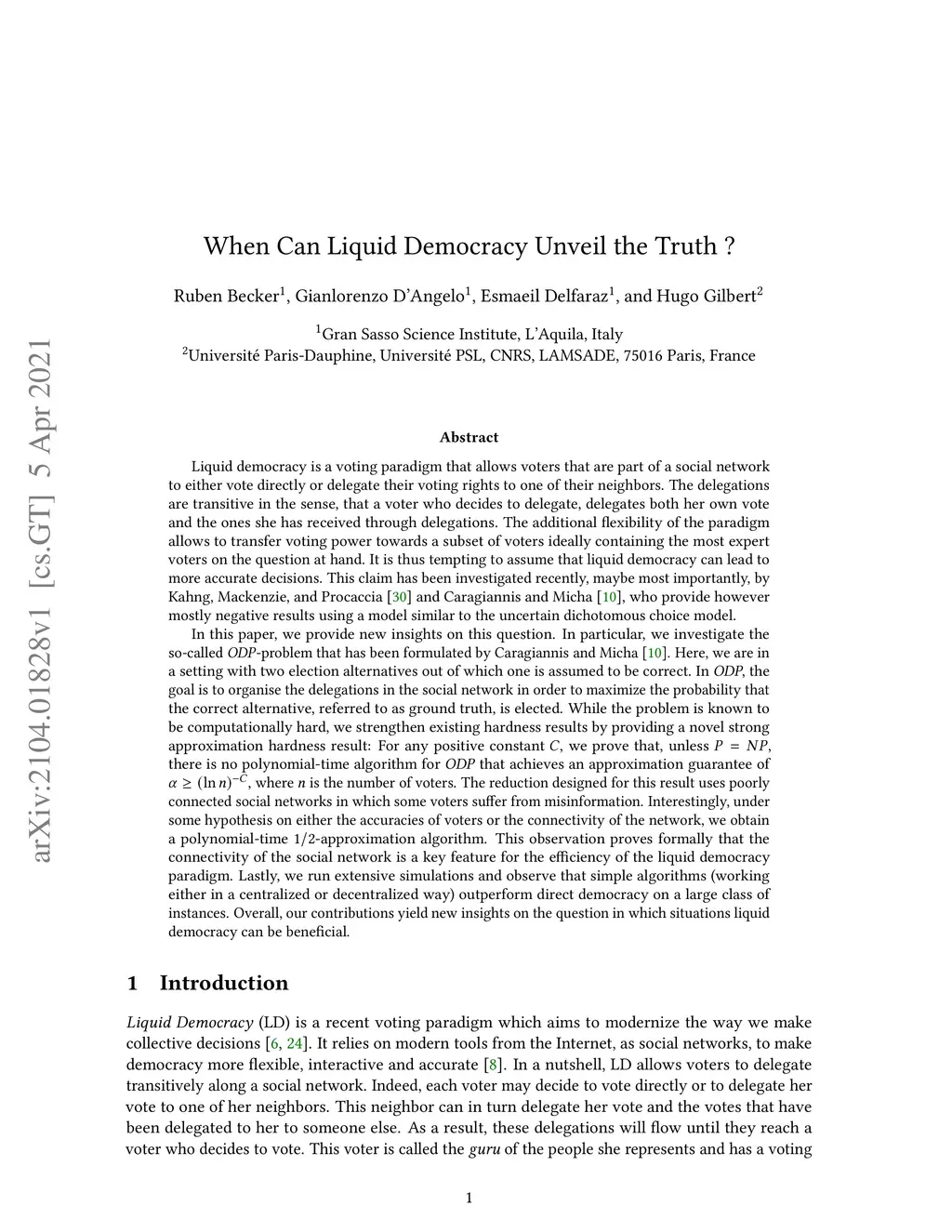 In this paper, we investigate the so-called ODP-problem that has been formulated by Caragiannis and Micha [10]. Here, we are in a setting with two election alternatives out of which one is assumed to be correct. In ODP, the goal is to organise the delegations in the social network in order to maximize the probability that the correct alternative, referred to as ground truth, is elected. While the problem is known to be computationally hard, we strengthen existing hardness results by providing a novel strong approximation hardness result: For any positive constant , we prove that, unless , there is no polynomial-time algorithm for ODP that achieves an approximation guarantee of , where is the number of voters. The reduction designed for this result uses poorly connected social networks in which some voters suffer from misinformation. Interestingly, under some hypothesis on either the accuracies of voters or the connectivity of the network, we obtain a polynomial-time -approximation algorithm. This observation proves formally that the connectivity of the social network is a key feature for the efficiency of the liquid democracy paradigm. Lastly, we run extensive simulations and observe that simple algorithms (working either in a centralized or decentralized way) outperform direct democracy on a large class of instances. Overall, our contributions yield new insights on the question in which situations liquid democracy can be beneficial.