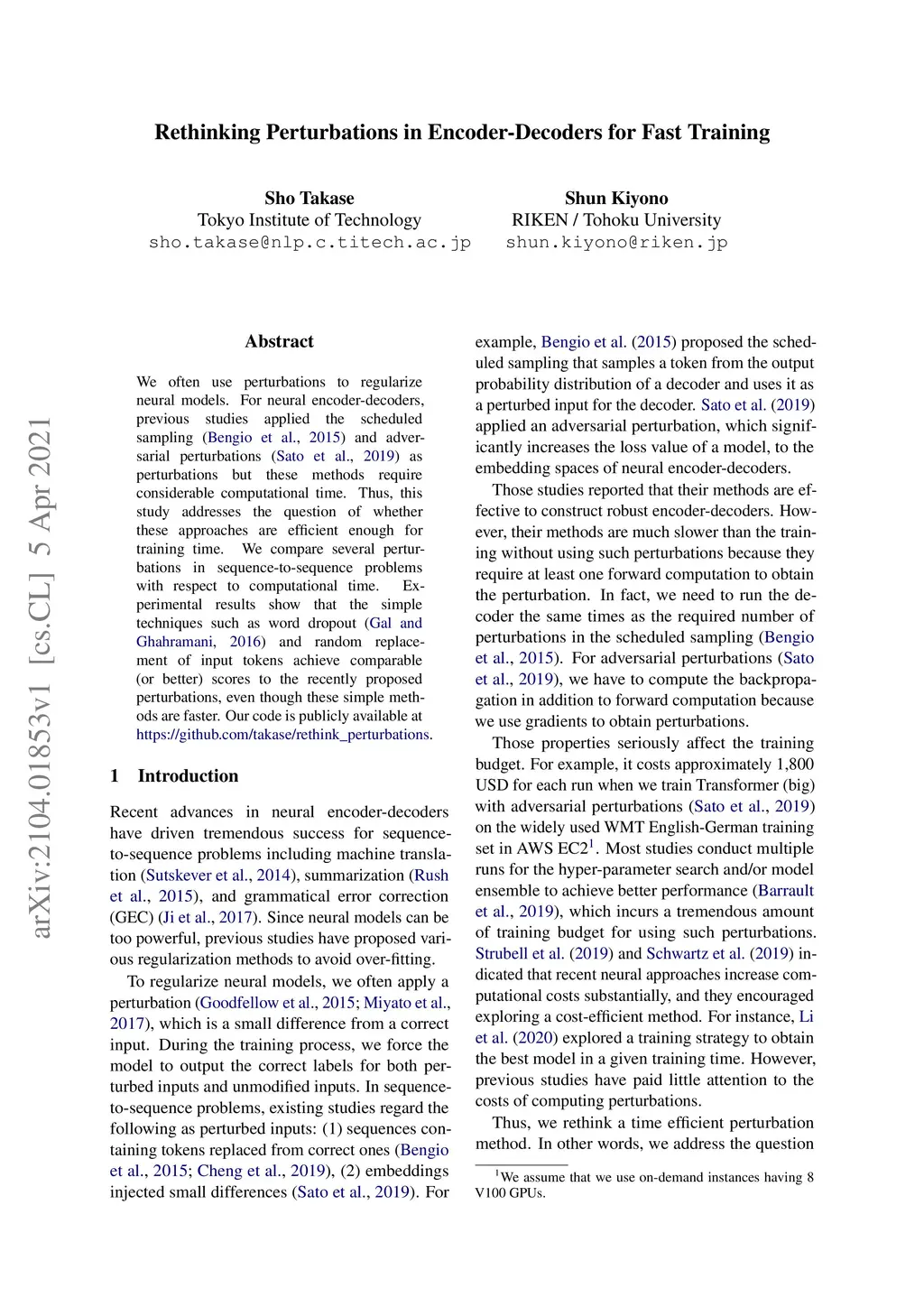 Rethinking Perturbations in Encoder-Decoders for Fast Training