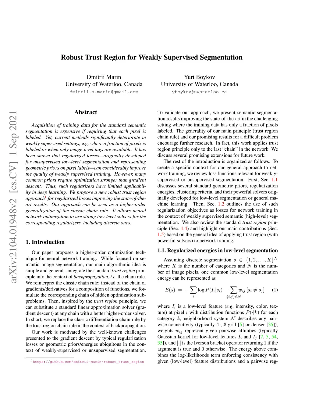 Robust Trust Region for Weakly Supervised Segmentation