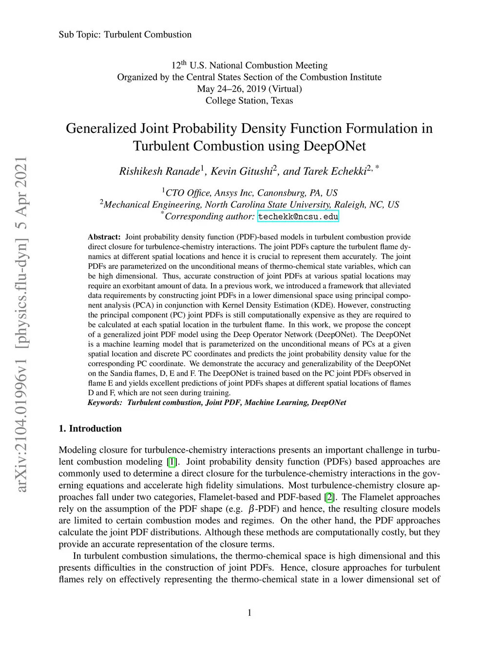 Joint probability density function (PDF)-based models in turbulent combustion provide direct closure for turbulence-chemistry interactions. The joint PDFs capture the turbulent flame dynamics at different spatial locations and hence it is crucial to represent them accurately. The jointPDFs are parameterized on the unconditional means of thermo-chemical state variables, which can be high dimensional. Thus, accurate construction of joint PDFs at various spatial locations may require an exorbitant amount of data. In a previous work, we introduced a framework that alleviated data requirements by constructing joint PDFs in a lower dimensional space using principal component analysis (PCA) in conjunction with Kernel Density Estimation (KDE). However, constructing the principal component (PC) joint PDFs is still computationally expensive as they are required to be calculated at each spatial location in the turbulent flame. In this work, we propose the concept of a generalized joint PDF model using the Deep Operator Network (DeepONet). The DeepONet is a machine learning model that is parameterized on the unconditional means of PCs at a given spatial location and discrete PC coordinates and predicts the joint probability density value for the corresponding PC coordinate. We demonstrate the accuracy and generalizability of the DeepONet on the Sandia flames, D, E and F. The DeepONet is trained based on the PC joint PDFs observed inflame E and yields excellent predictions of joint PDFs shapes at different spatial locations of flamesD and F, which are not seen during training