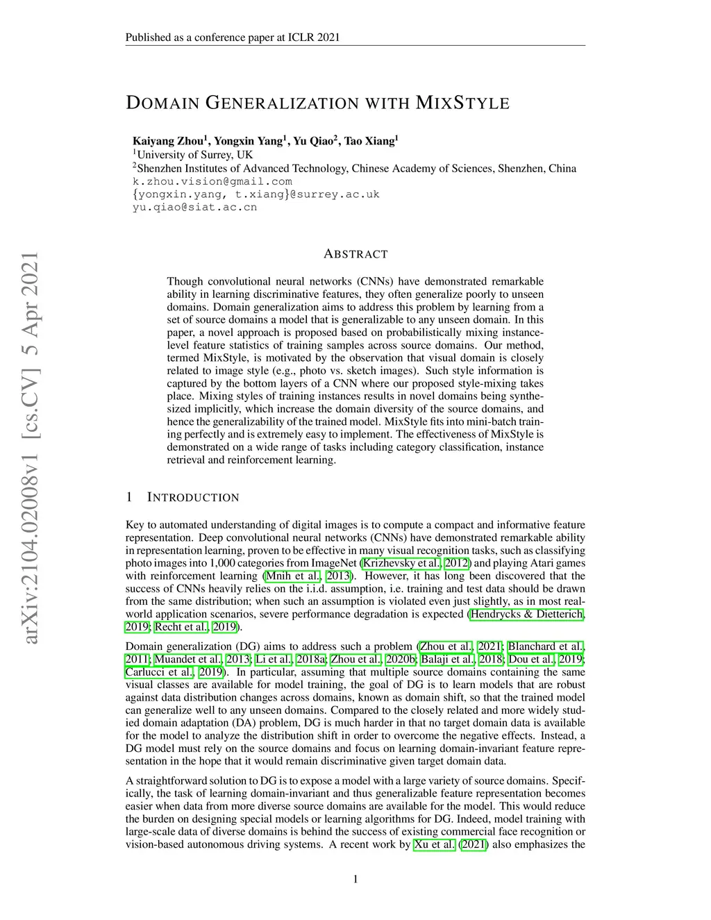 Domain Generalization with MixStyle