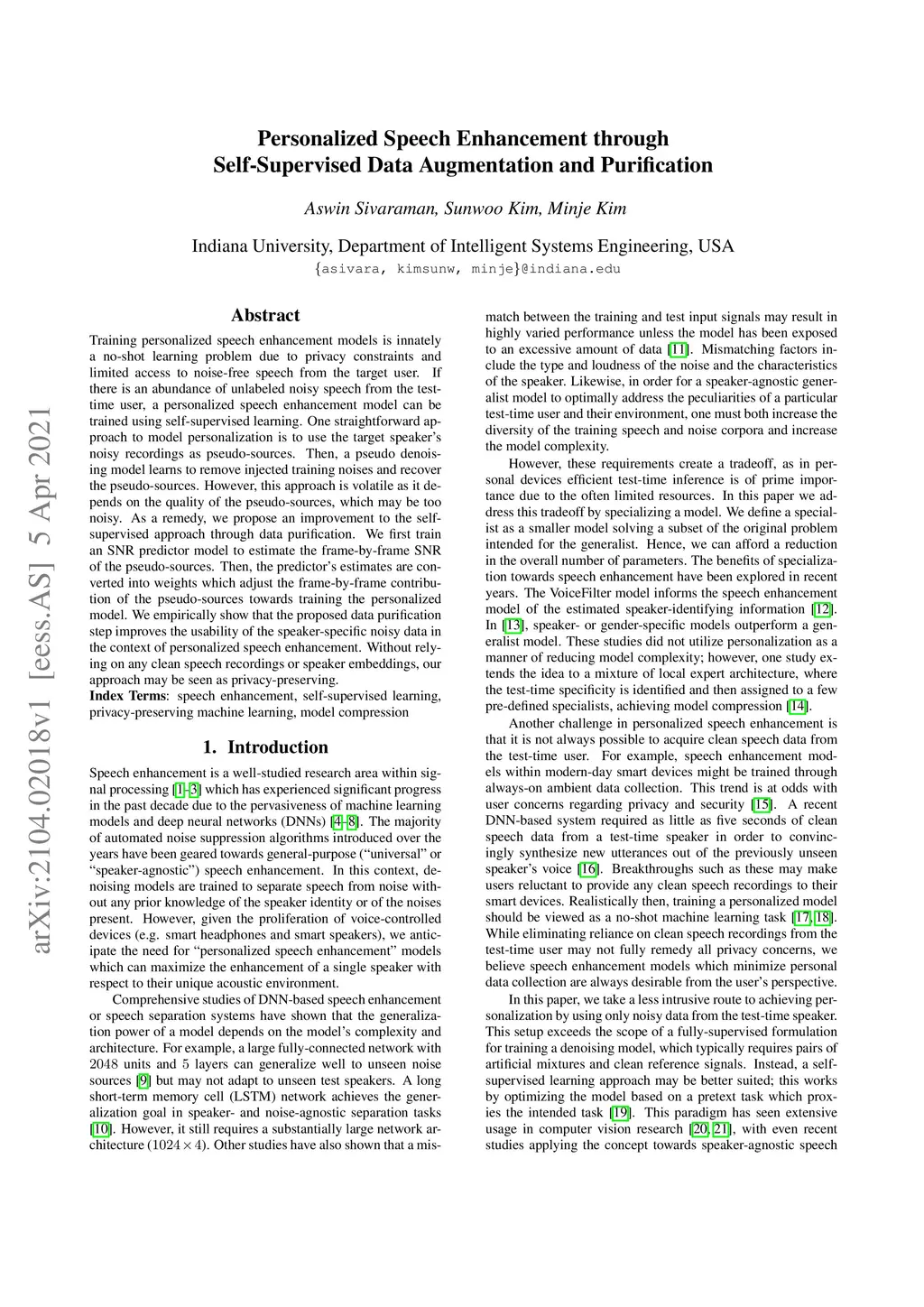 Training personalized speech enhancement models is innately a no-shot learning problem due to privacy constraints and limited access to noise-free speech from the target user. If there is an abundance of unlabeled noisy speech from the test-time user, a personalized speech enhancement model can be trained using self-supervised learning. One straightforward approach to model personalization is to use the target speaker's noisy recordings as pseudo-sources. Then, a pseudo denoising model learns to remove injected training noises and recover the pseudo-sources. However, this approach is volatile as it depends on the quality of the pseudo-sources, which may be too noisy. As a remedy, we propose an improvement to the self-supervised approach through data purification. We first train an SNR predictor model to estimate the frame-by-frame SNR of the pseudo-sources. Then, the predictor's estimates are converted into weights which adjust the frame-by-frame contribution of the pseudo-sources towards training the personalized model. We empirically show that the proposed data purification step improves the usability of the speaker-specific noisy data in the context of personalized speech enhancement. Without relying on any clean speech recordings or speaker embeddings, our approach may be seen as privacy-preserving.