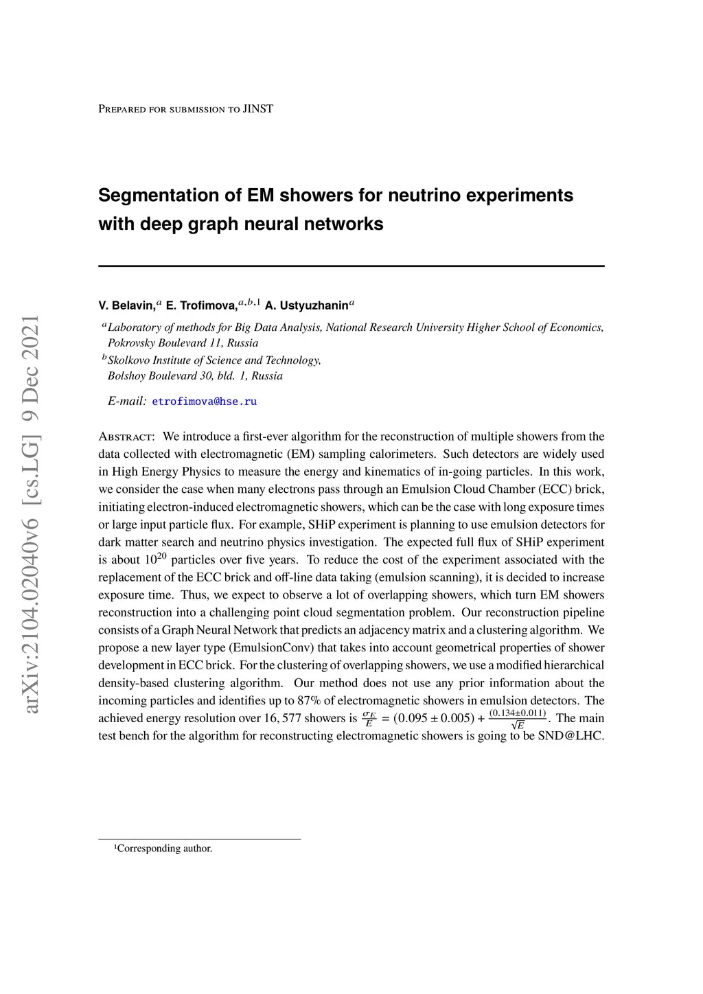 We introduce a first-ever algorithm for the reconstruction of multiple showers from the data collected with electromagnetic (EM) sampling calorimeters. Such detectors are widely used in High Energy Physics to measure the energy and kinematics of in-going particles. In this work, we consider the case when many electrons pass through an Emulsion Cloud Chamber (ECC) brick, initiating electron-induced electromagnetic showers, which can be the case with long exposure times or large input particle flux. For example, SHiP experiment is planning to use emulsion detectors for dark matter search and neutrino physics investigation. The expected full flux of SHiP experiment is about 10^20 particles over five years. To reduce the cost of the experiment associated with the replacement of the ECC brick and off-line data taking (emulsion scanning), it is decided to increase exposure time. Thus, we expect to observe a lot of overlapping showers, which turn EM showers reconstruction into a challenging point cloud segmentation problem. Our reconstruction pipeline consists of a Graph Neural Network that predicts an adjacency matrix and a clustering algorithm. We propose a new layer type (EmulsionConv) that takes into account geometrical properties of shower development in ECC brick. For the clustering of overlapping showers, we use a modified hierarchical density-based clustering algorithm. Our method does not use any prior information about the incoming particles and identifies up to 87% of electromagnetic showers in emulsion detectors. The main test bench for the algorithm for reconstructing electromagnetic showers is going to be SND@LHC.