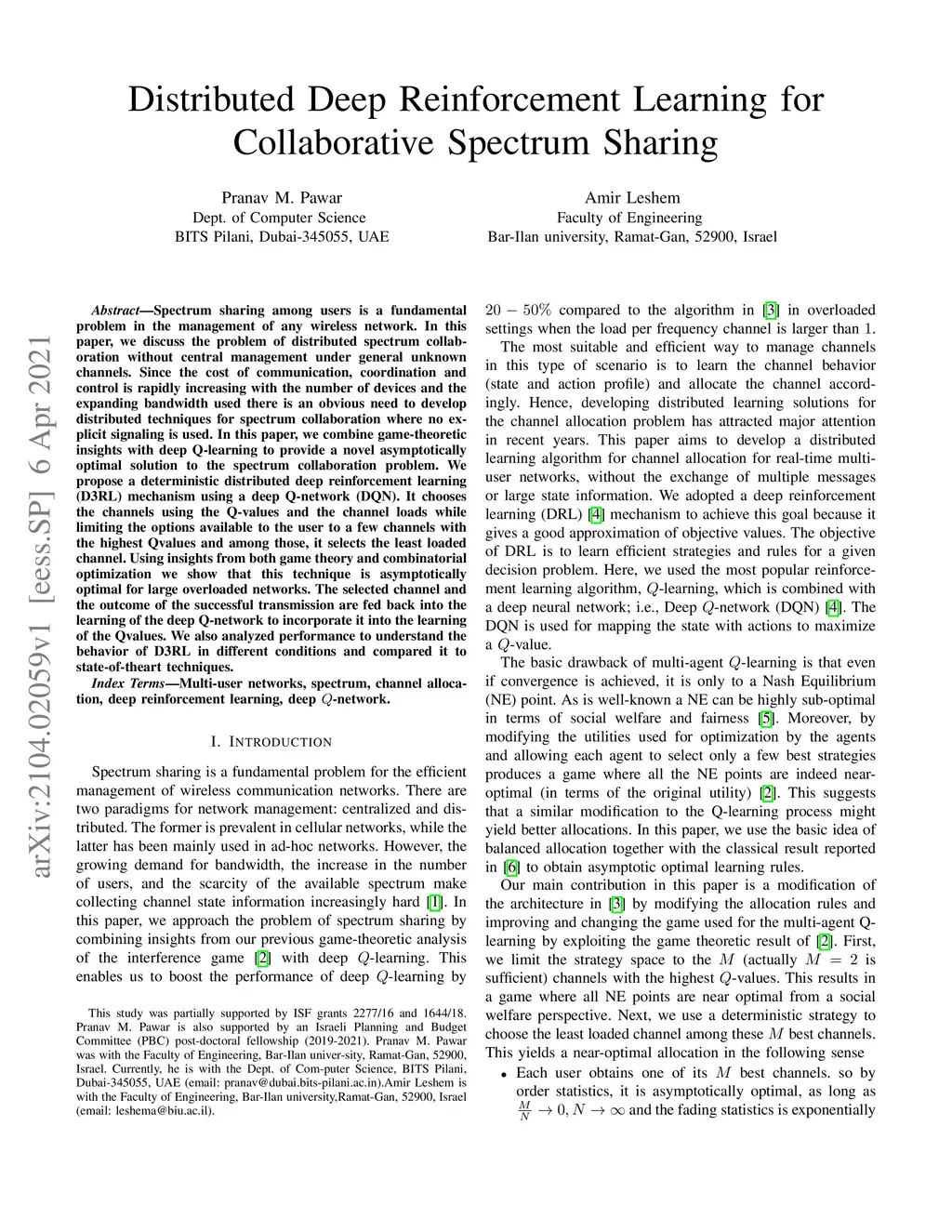 Spectrum sharing among users is a fundamental problem in the management of any wireless network. In this paper, we discuss the problem of distributed spectrum collaboration without central management under general unknown channels. Since the cost of communication, coordination and control is rapidly increasing with the number of devices and the expanding bandwidth used there is an obvious need to develop distributed techniques for spectrum collaboration where no explicit signaling is used. In this paper, we combine game-theoretic insights with deep Q-learning to provide a novel asymptotically optimal solution to the spectrum collaboration problem. We propose a deterministic distributed deep reinforcement learning(D3RL) mechanism using a deep Q-network (DQN). It chooses the channels using the Q-values and the channel loads while limiting the options available to the user to a few channels with the highest Q-values and among those, it selects the least loaded channel. Using insights from both game theory and combinatorial optimization we show that this technique is asymptotically optimal for large overloaded networks. The selected channel and the outcome of the successful transmission are fed back into the learning of the deep Q-network to incorporate it into the learning of the Q-values. We also analyzed performance to understand the behavior of D3RL in differ