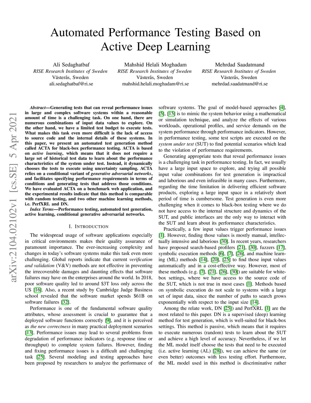 Automated Performance Testing Based on Active Deep Learning