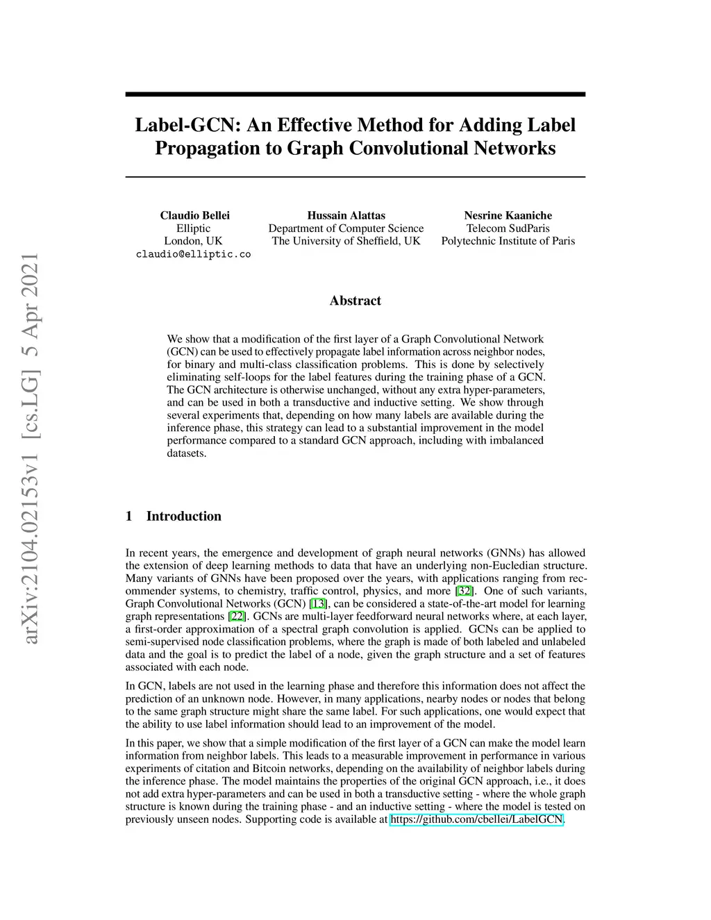 We show that a modification of the first layer of a Graph Convolutional Network (GCN) can be used to effectively propagate label information across neighbor nodes, for binary and multi-class classification problems. This is done by selectively eliminating self-loops for the label features during the training phase of a GCN. The GCN architecture is otherwise unchanged, without any extra hyper-parameters, and can be used in both a transductive and inductive setting. We show through several experiments that, depending on how many labels are available during the inference phase, this strategy can lead to a substantial improvement in the model performance compared to a standard GCN approach, including with imbalanced datasets.