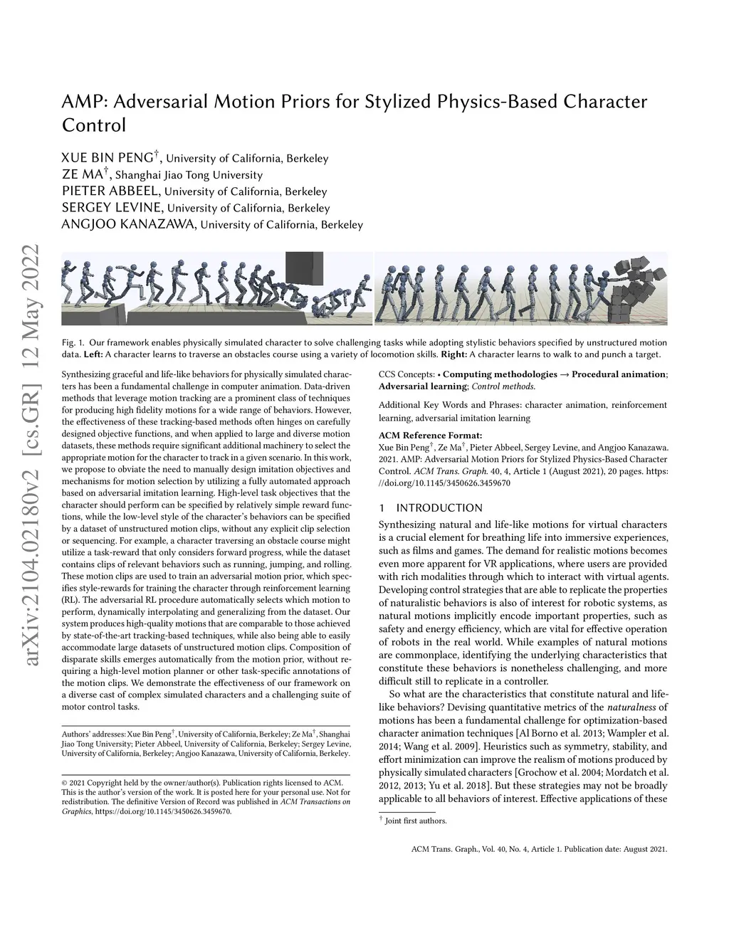 AMP: Adversarial Motion Priors for Stylized Physics-Based Character