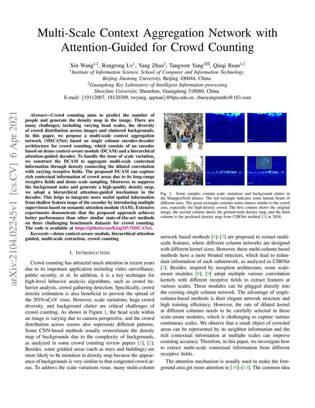 Multi-Scale Context Aggregation Network with Attention-Guided for Crowd