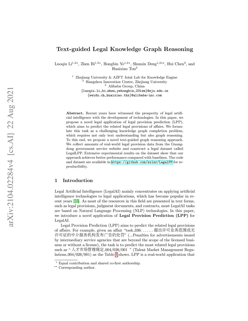 Recent years have witnessed the prosperity of legal artificial intelligence with the development of technologies. In this paper, we propose a novel legal application of legal provision prediction (LPP), which aims to predict the related legal provisions of affairs. We formulate this task as a challenging knowledge graph completion problem, which requires not only text understanding but also graph reasoning. To this end, we propose a novel text-guided graph reasoning approach. We collect amounts of real-world legal provision data from the Guangdong government service website and construct a legal dataset called LegalLPP. Extensive experimental results on the dataset show that our approach achieves better performance compared with baselines. The code and dataset are available in \url{https://github.com/zjunlp/LegalPP} for reproducibility.