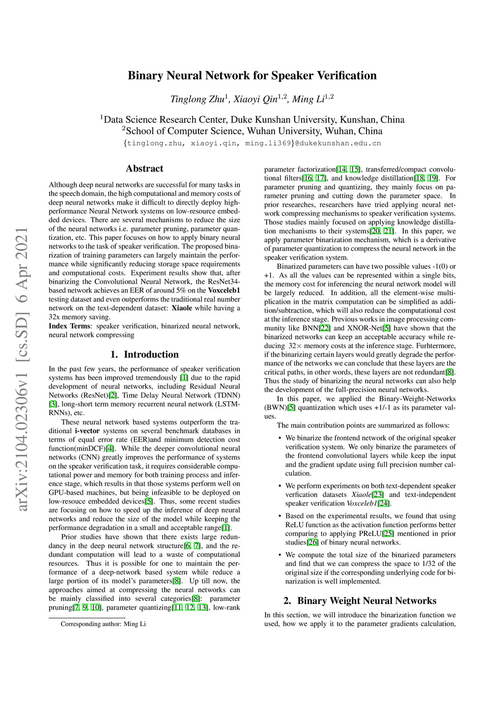 Binary Neural Network for Speaker Verification