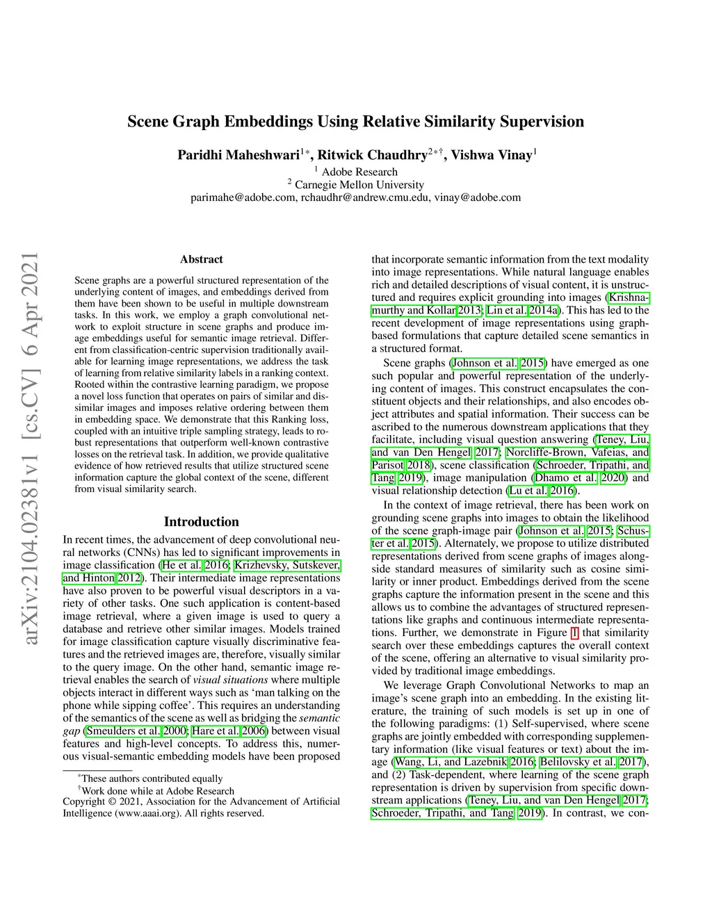 Scene Graph Embeddings Using Relative Similarity Supervision