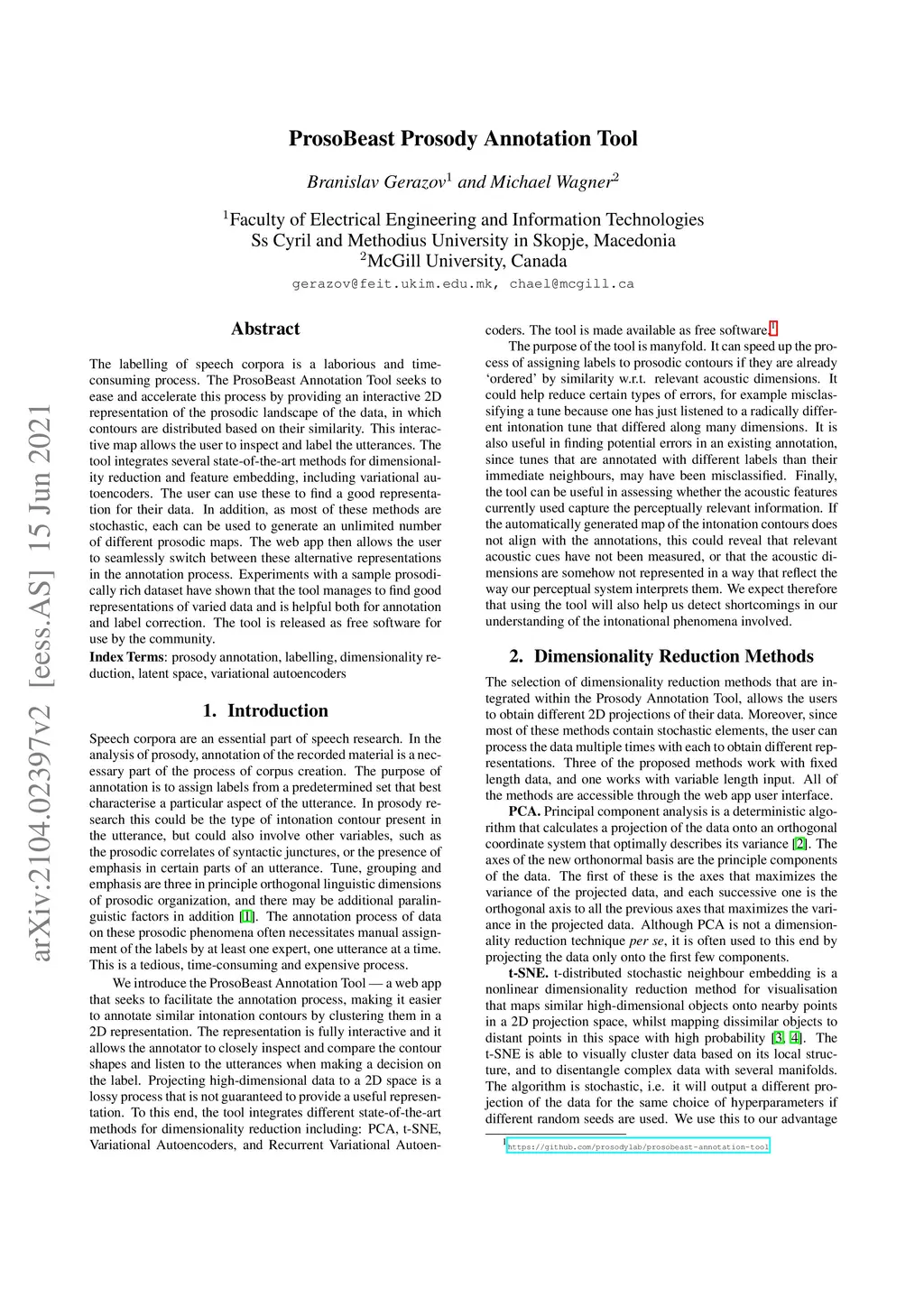 The labelling of speech corpora is a laborious and time-consuming process. The ProsoBeast Annotation Tool seeks to ease and accelerate this process by providing an interactive 2D representation of the prosodic landscape of the data, in which contours are distributed based on their similarity. This interactive map allows the user to inspect and label the utterances. The tool integrates several state-of-the-art methods for dimensionality reduction and feature embedding, including variational autoencoders. The user can use these to find a good representation for their data. In addition, as most of these methods are stochastic, each can be used to generate an unlimited number of different prosodic maps. The web app then allows the user to seamlessly switch between these alternative representations in the annotation process. Experiments with a sample prosodically rich dataset have shown that the tool manages to find good representations of varied data and is helpful both for annotation and label correction. The tool is released as free software for use by the community.