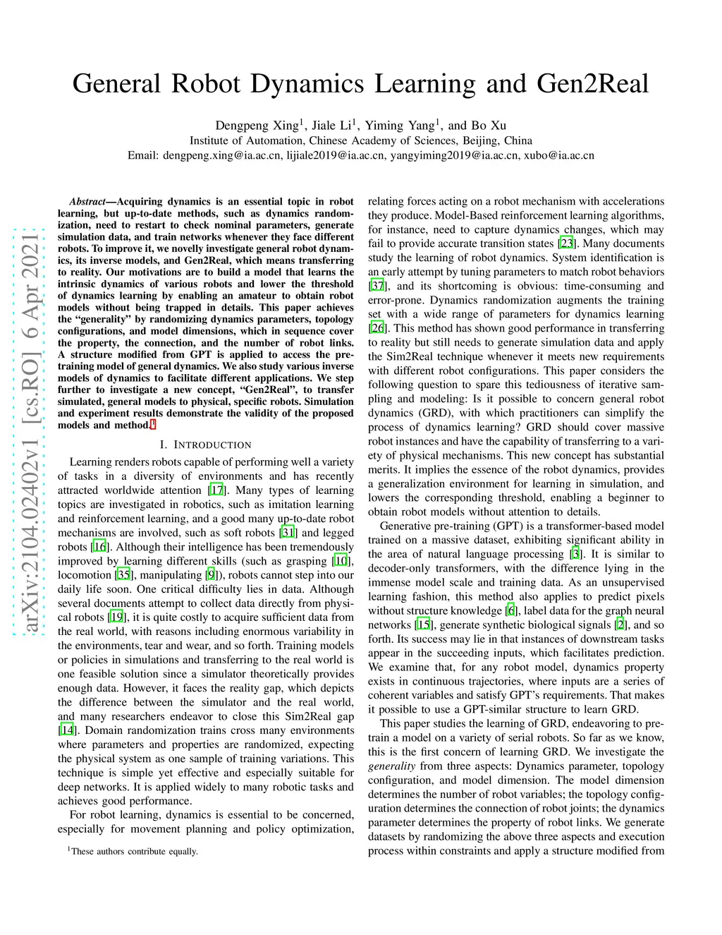 Acquiring dynamics is an essential topic in robot learning, but up-to-date methods, such as dynamics randomization, need to restart to check nominal parameters, generate simulation data, and train networks whenever they face different robots. To improve it, we novelly investigate general robot dynamics, its inverse models, and Gen2Real, which means transferring to reality. Our motivations are to build a model that learns the intrinsic dynamics of various robots and lower the threshold of dynamics learning by enabling an amateur to obtain robot models without being trapped in details. This paper achieves the "generality" by randomizing dynamics parameters, topology configurations, and model dimensions, which in sequence cover the property, the connection, and the number of robot links. A structure modified from GPT is applied to access the pre-training model of general dynamics. We also study various inverse models of dynamics to facilitate different applications. We step further to investigate a new concept, "Gen2Real", to transfer simulated, general models to physical, specific robots. Simulation and experiment results demonstrate the validity of the proposed models and method.\footnote{ These authors contribute equally.