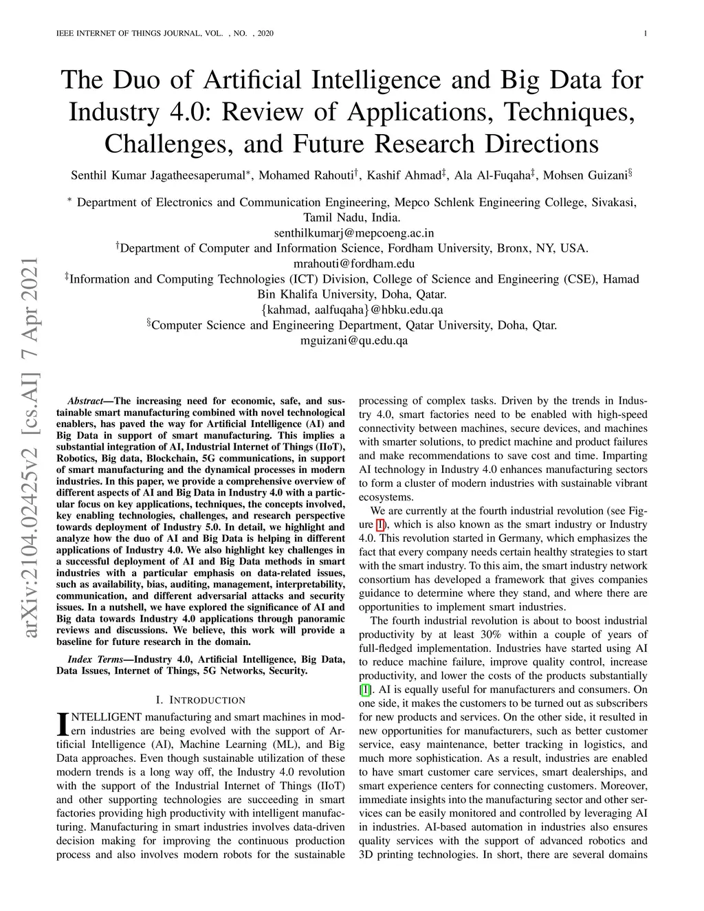 The Duo of Artificial Intelligence and Big Data for Industry 4.0: Review
