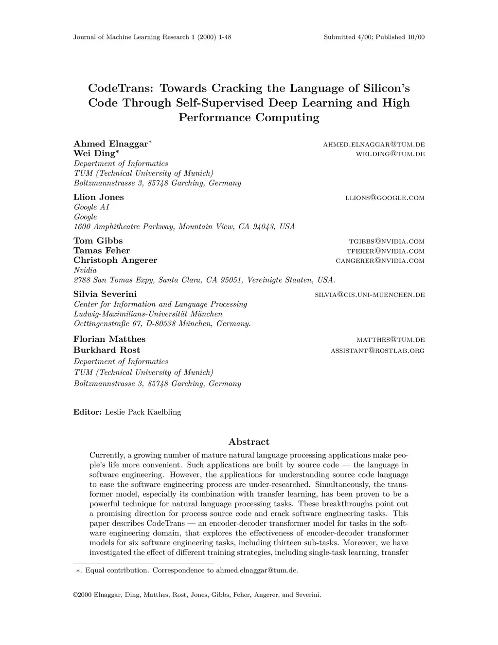 CodeTrans: Towards Cracking the Language of Silicon's Code Through