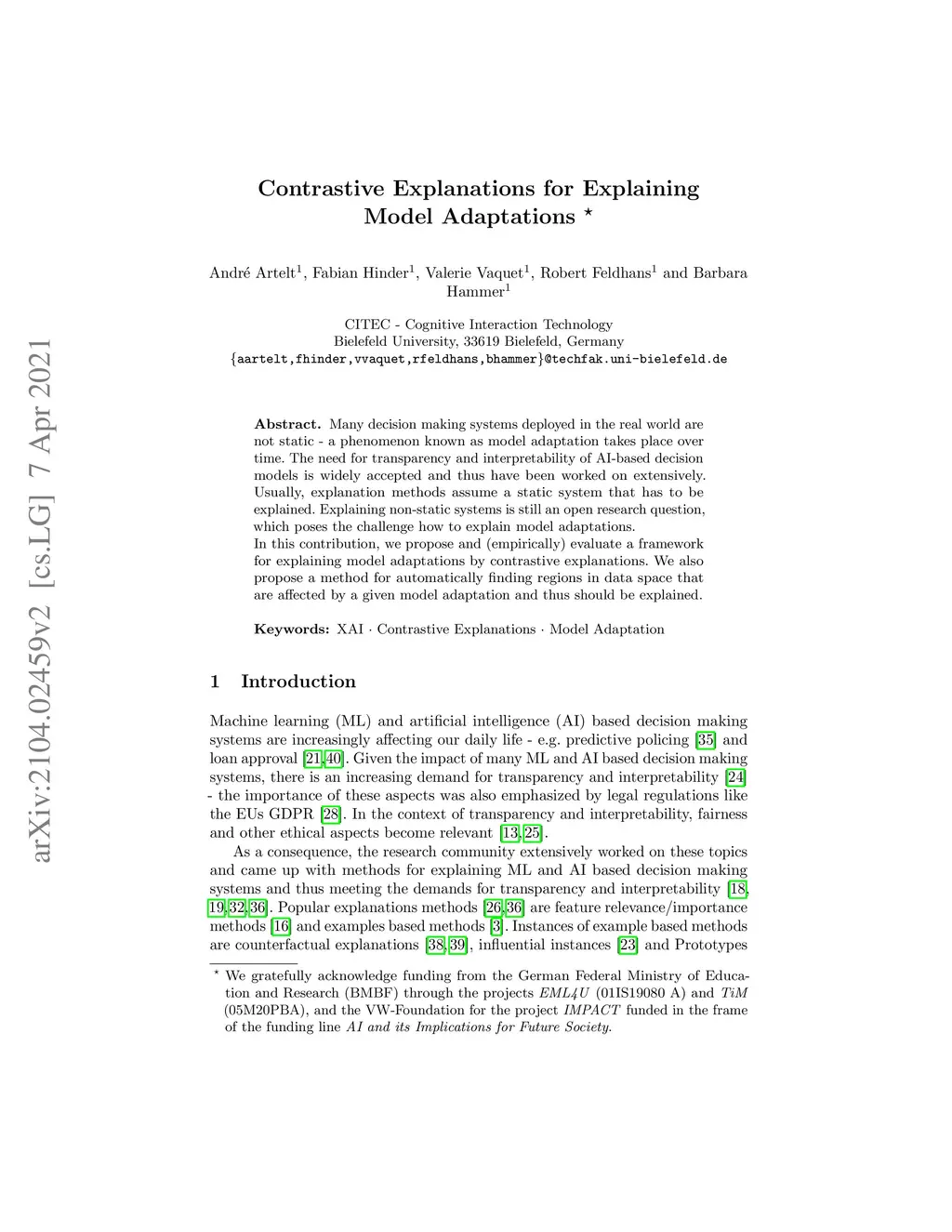 Many decision making systems deployed in the real world are not static - a phenomenon known as model adaptation takes place over time. The need for transparency and interpretability of AI-based decision models is widely accepted and thus have been worked on extensively. Usually, explanation methods assume a static system that has to be explained. Explaining non-static systems is still an open research question, which poses the challenge how to explain model adaptations. In this contribution, we propose and (empirically) evaluate a framework for explaining model adaptations by contrastive explanations. We also propose a method for automatically finding regions in data space that are affected by a given model adaptation and thus should be explained.