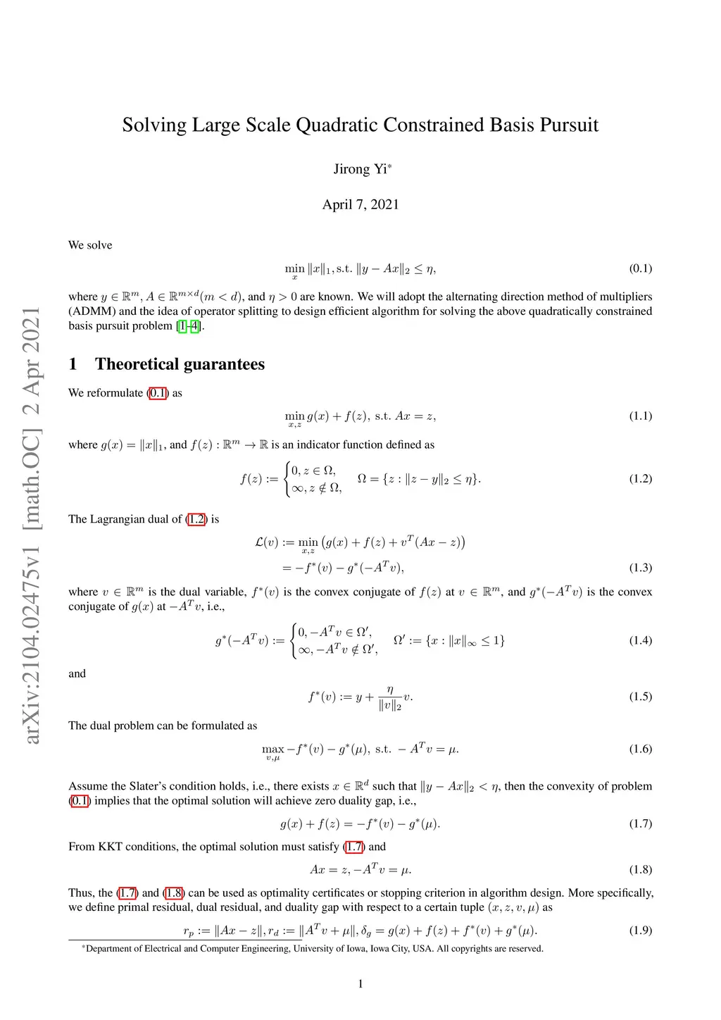 Solving Large Scale Quadratic Constrained Basis Pursuit