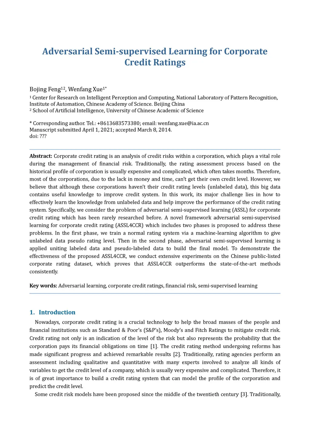 Adversarial Semi-supervised Learning for Corporate Credit Ratings