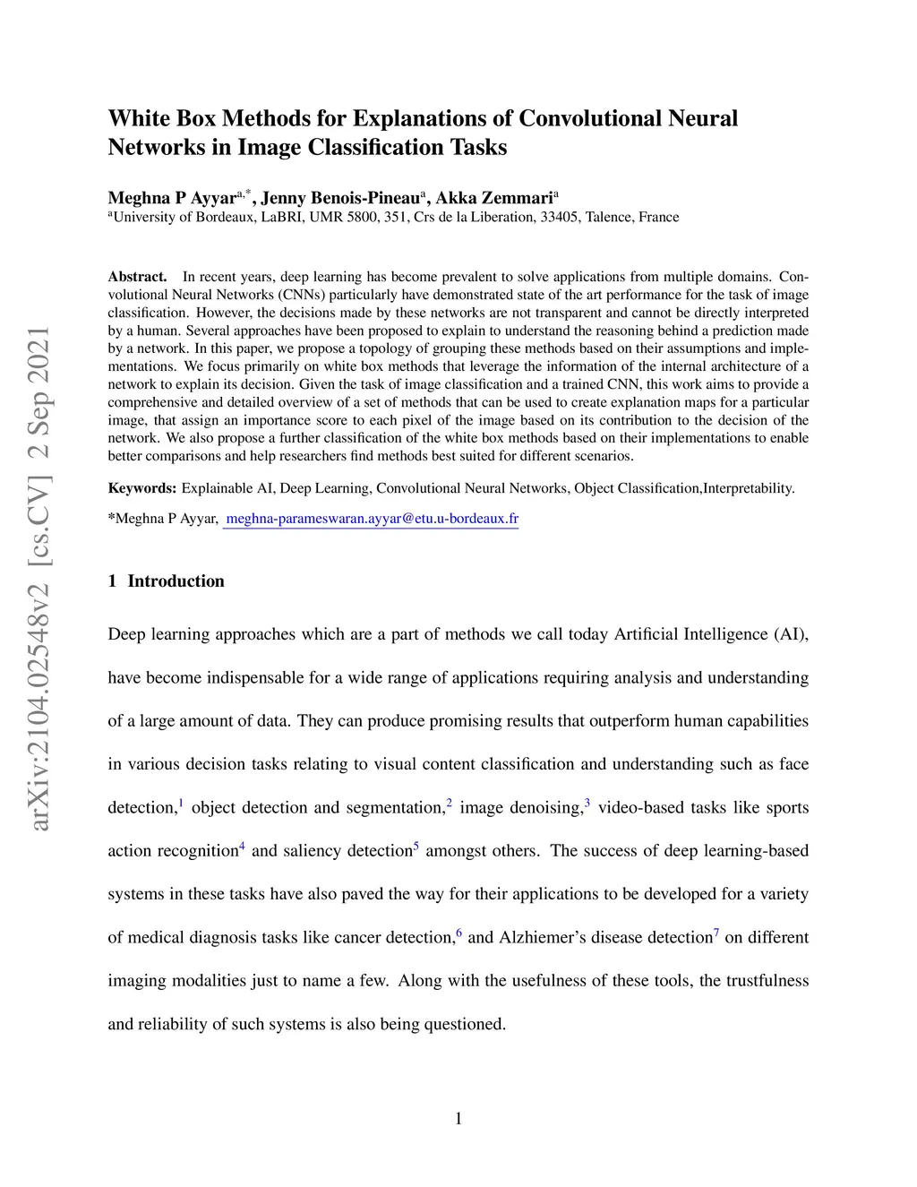 In recent years, deep learning has become prevalent to solve applications from multiple domains. Convolutional Neural Networks (CNNs) particularly have demonstrated state of the art performance for the task of image classification. However, the decisions made by these networks are not transparent and cannot be directly interpreted by a human. Several approaches have been proposed to explain to understand the reasoning behind a prediction made by a network. In this paper, we propose a topology of grouping these methods based on their assumptions and implementations. We focus primarily on white box methods that leverage the information of the internal architecture of a network to explain its decision. Given the task of image classification and a trained CNN, this work aims to provide a comprehensive and detailed overview of a set of methods that can be used to create explanation maps for a particular image, that assign an importance score to each pixel of the image based on its contribution to the decision of the network. We also propose a further classification of the white box methods based on their implementations to enable better comparisons and help researchers find methods best suited for different scenarios.