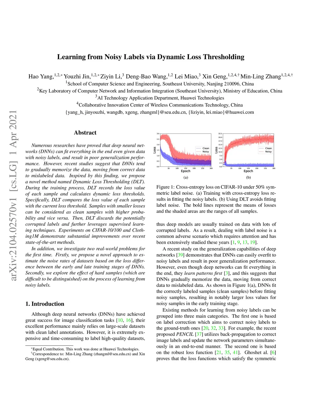 Learning from Noisy Labels via Dynamic Loss Thresholding