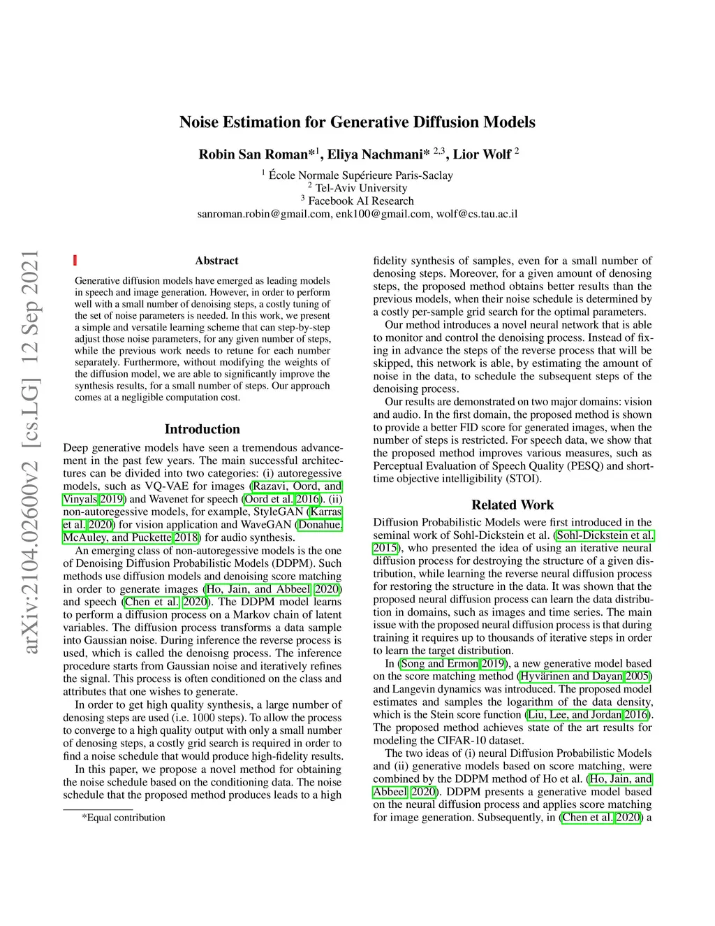 Noise Estimation for Generative Diffusion Models