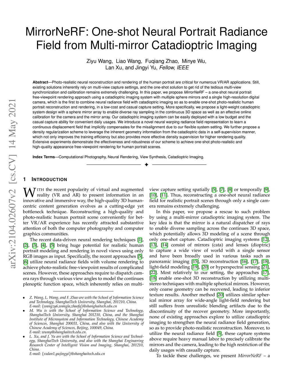 MirrorNeRF: One-shot Neural Portrait Radiance Field from Multi-mirror