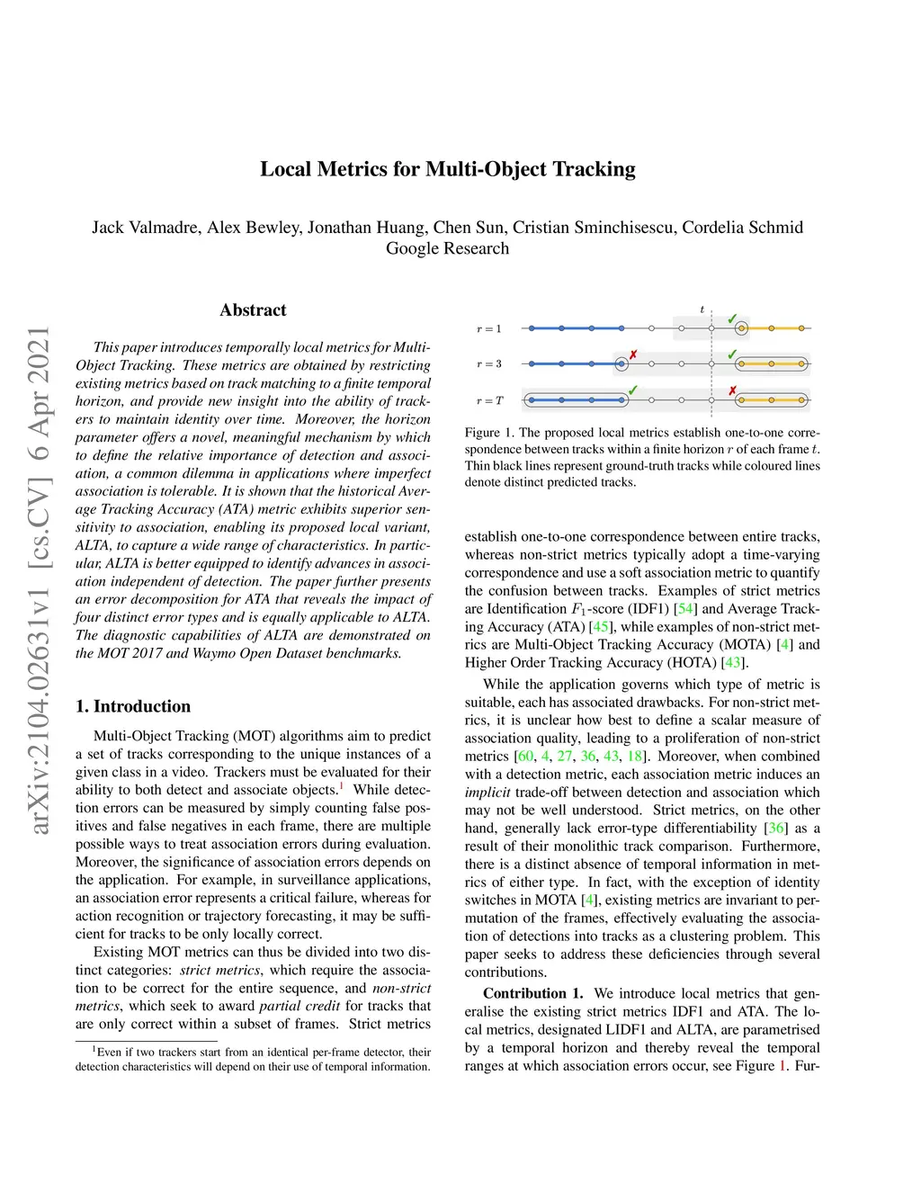 This paper introduces temporally local metrics for Multi-Object Tracking. These metrics are obtained by restricting existing metrics based on track matching to a finite temporal horizon, and provide new insight into the ability of trackers to maintain identity over time. Moreover, the horizon parameter offers a novel, meaningful mechanism by which to define the relative importance of detection and association, a common dilemma in applications where imperfect association is tolerable. It is shown that the historical Average Tracking Accuracy (ATA) metric exhibits superior sensitivity to association, enabling its proposed local variant, ALTA, to capture a wide range of characteristics. In particular, ALTA is better equipped to identify advances in association independent of detection. The paper further presents an error decomposition for ATA that reveals the impact of four distinct error types and is equally applicable to ALTA. The diagnostic capabilities of ALTA are demonstrated on the MOT 2017 and Waymo Open Dataset benchmarks.