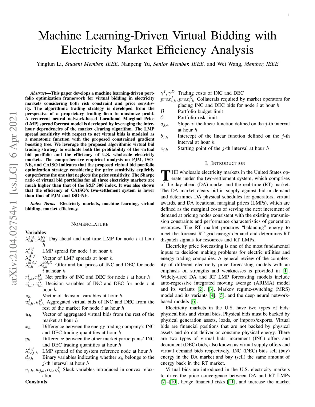 Machine Learning-Driven Virtual Bidding with Electricity Market