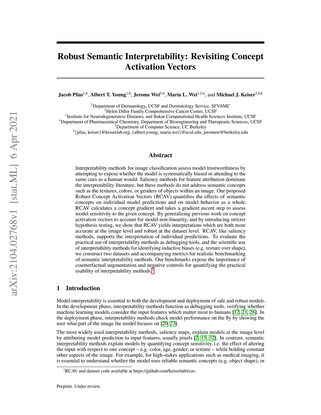 Interpretability methods for image classification assess model trustworthiness by attempting to expose whether the model is systematically biased or attending to the same cues as a human would. Saliency methods for feature attribution dominate the interpretability literature, but these methods do not address semantic concepts such as the textures, colors, or genders of objects within an image. Our proposed Robust Concept Activation Vectors (RCAV) quantifies the effects of semantic concepts on individual model predictions and on model behavior as a whole. RCAV calculates a concept gradient and takes a gradient ascent step to assess model sensitivity to the given concept. By generalizing previous work on concept activation vectors to account for model non-linearity, and by introducing stricter hypothesis testing, we show that RCAV yields interpretations which are both more accurate at the image level and robust at the dataset level. RCAV, like saliency methods, supports the interpretation of individual predictions. To evaluate the practical use of interpretability methods as debugging tools, and the scientific use of interpretability methods for identifying inductive biases (e.g. texture over shape), we construct two datasets and accompanying metrics for realistic benchmarking of semantic interpretability methods. Our benchmarks expose the importance of counterfactual augmentation and negative controls for quantifying the practical usability of interpretability methods.