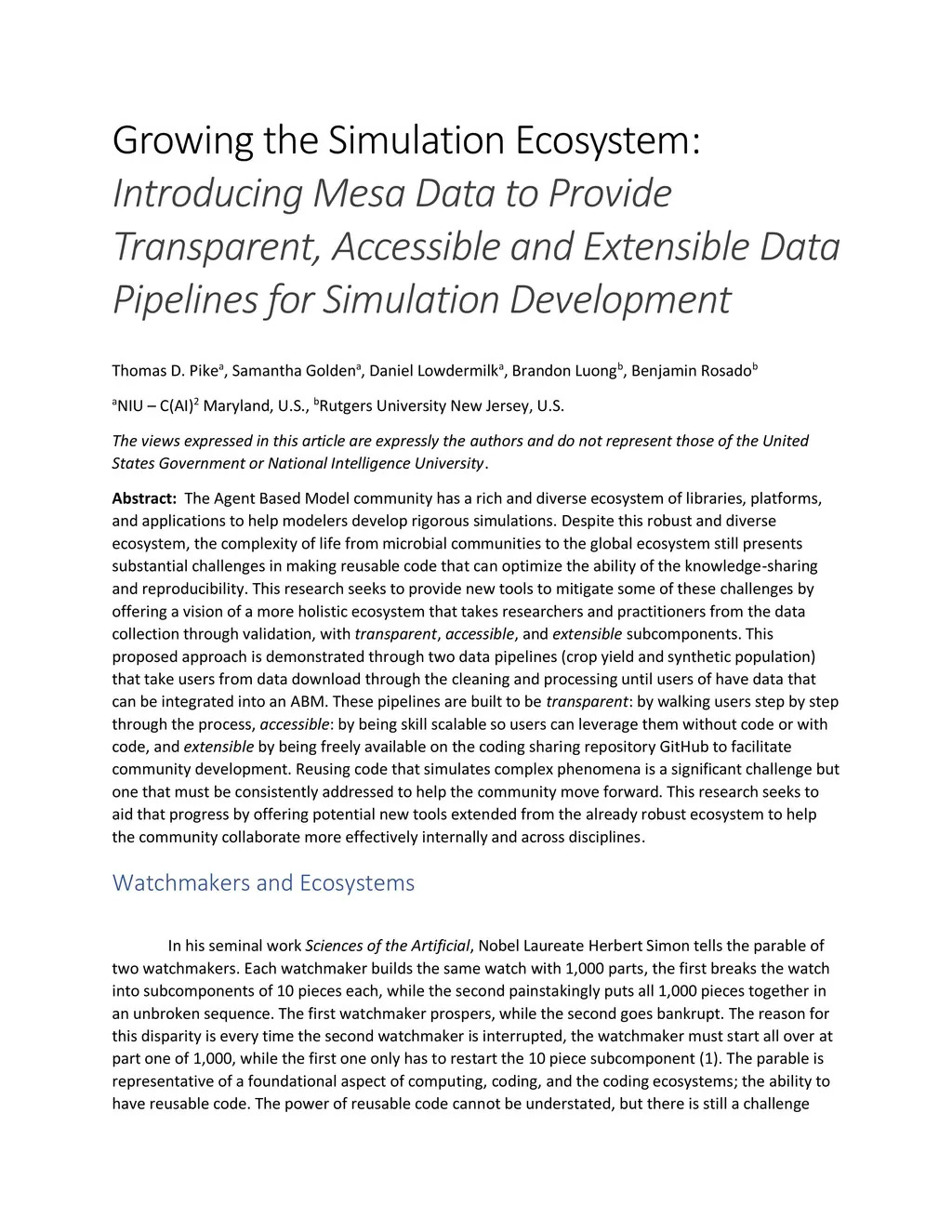 Growing the Simulation Ecosystem: Introducing Mesa Data to Provide