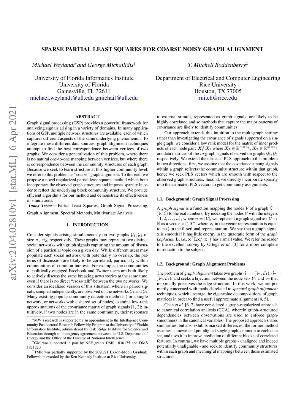Sparse Partial Least Squares for Coarse Noisy Graph Alignment