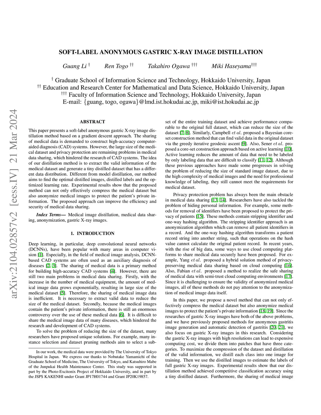 Soft-Label Anonymous Gastric X-ray Image Distillation