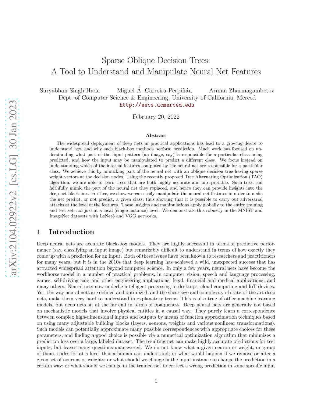 Sparse Oblique Decision Trees: A Tool to Understand and Manipulate