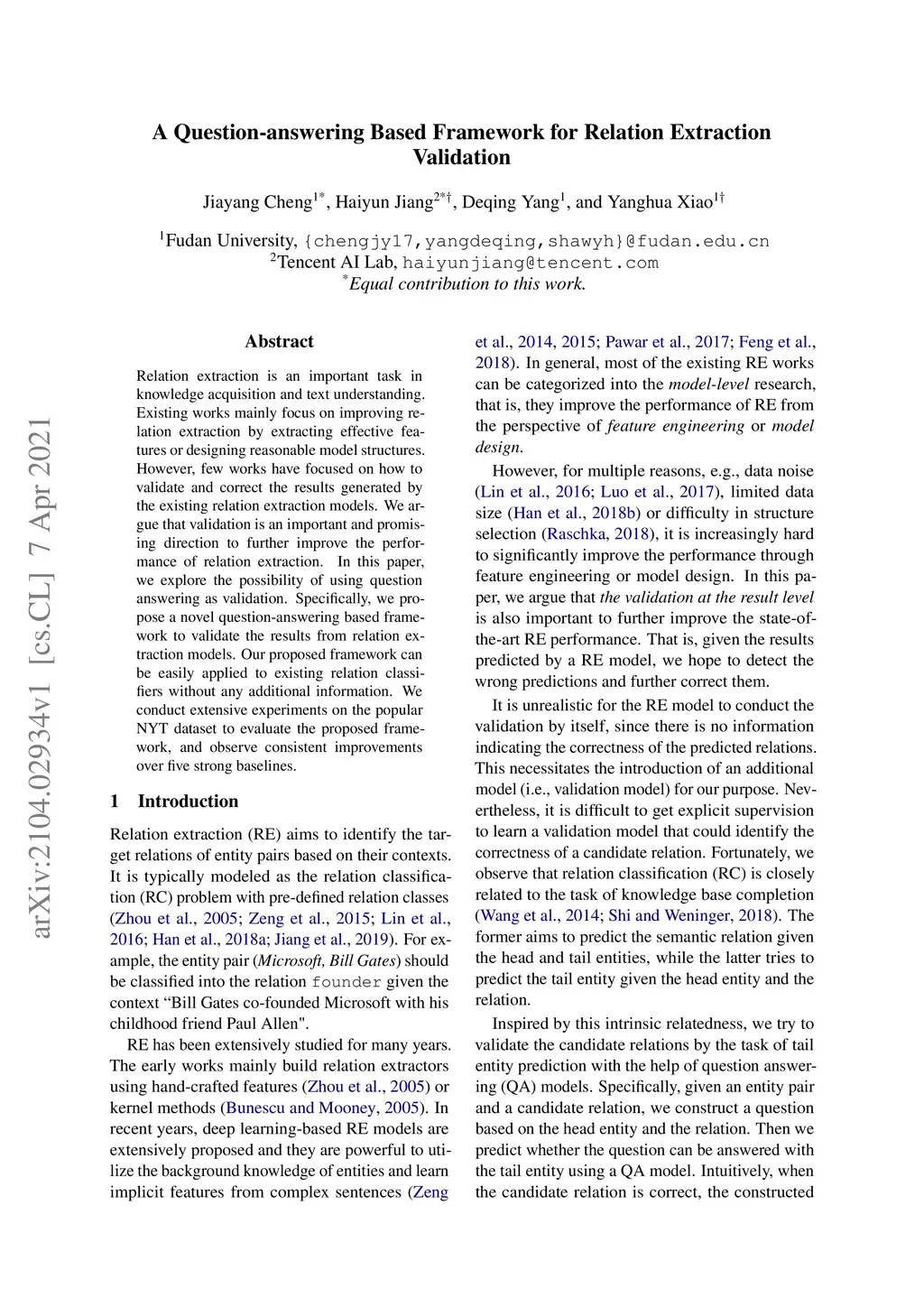 Relation extraction is an important task in knowledge acquisition and text understanding. Existing works mainly focus on improving relation extraction by extracting effective features or designing reasonable model structures. However, few works have focused on how to validate and correct the results generated by the existing relation extraction models. We argue that validation is an important and promising direction to further improve the performance of relation extraction. In this paper, we explore the possibility of using question answering as validation. Specifically, we propose a novel question-answering based framework to validate the results from relation extraction models. Our proposed framework can be easily applied to existing relation classifiers without any additional information. We conduct extensive experiments on the popular NYT dataset to evaluate the proposed framework, and observe consistent improvements over five strong baselines.