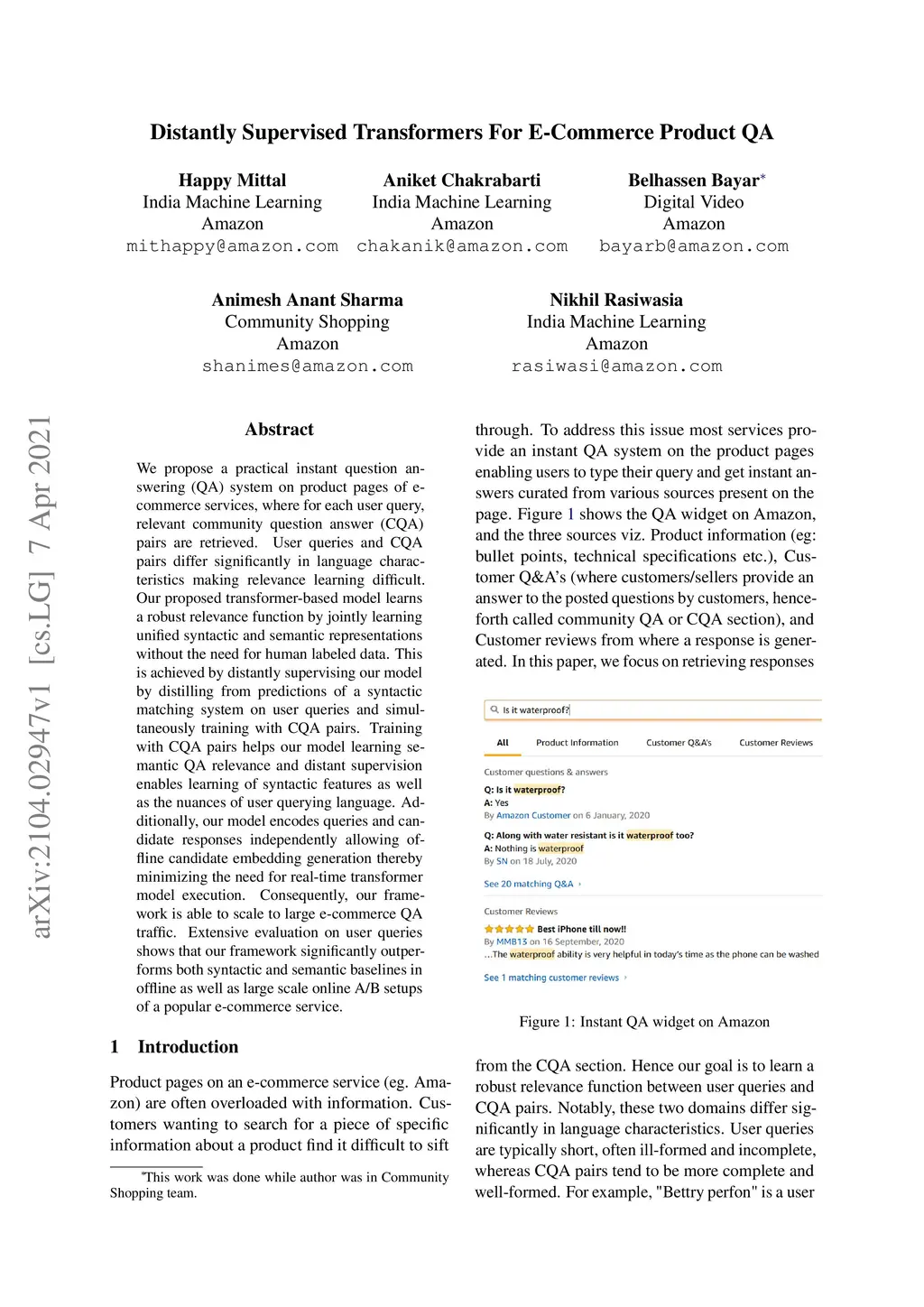 Distantly Supervised Transformers For E-Commerce Product QA