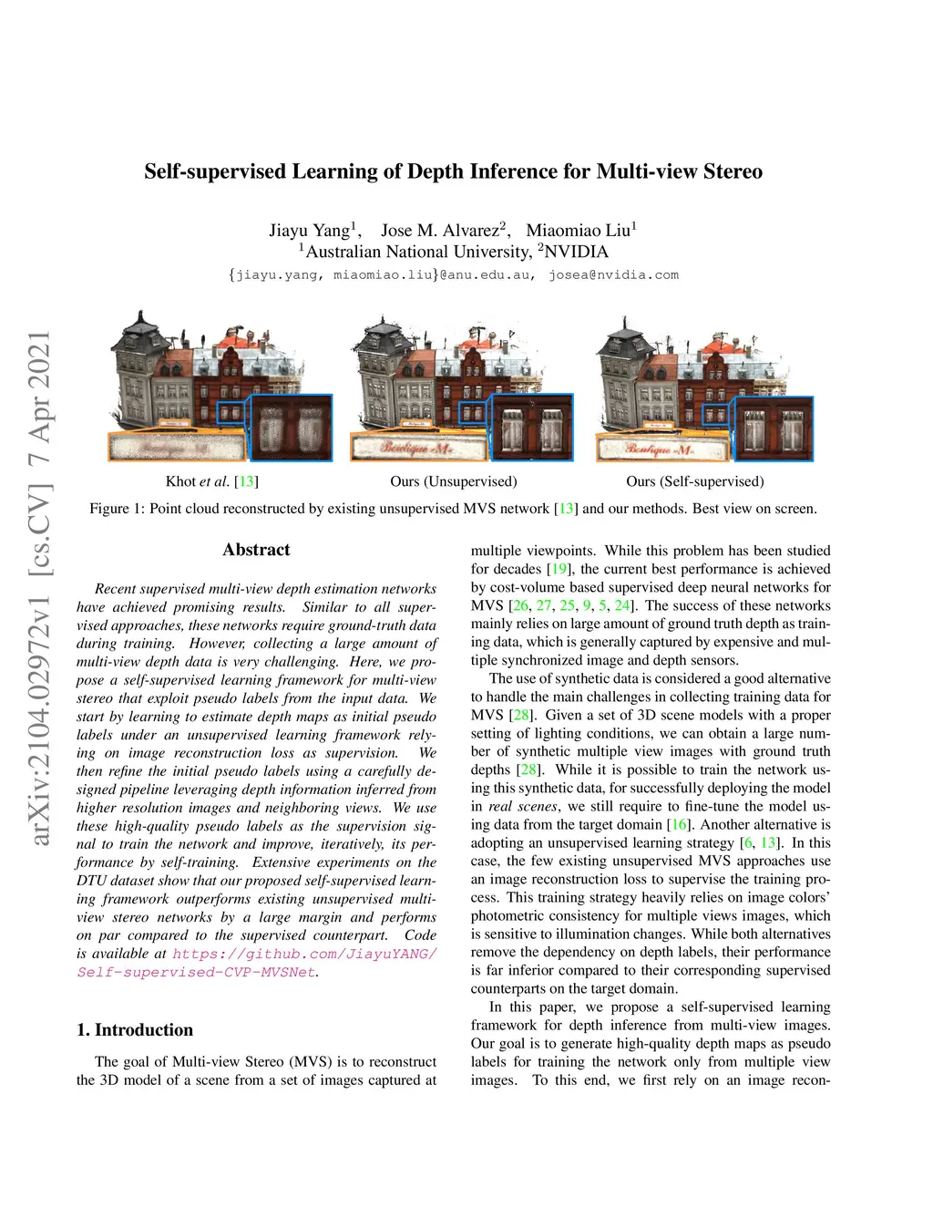 Self-supervised Learning of Depth Inference for Multi-view Stereo