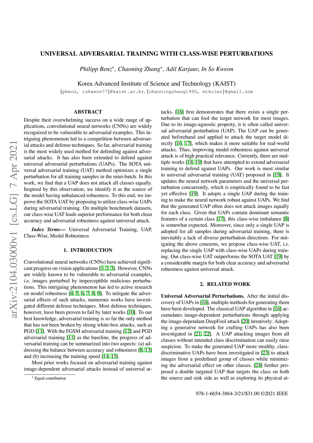 Universal Adversarial Training with Class-Wise Perturbations
