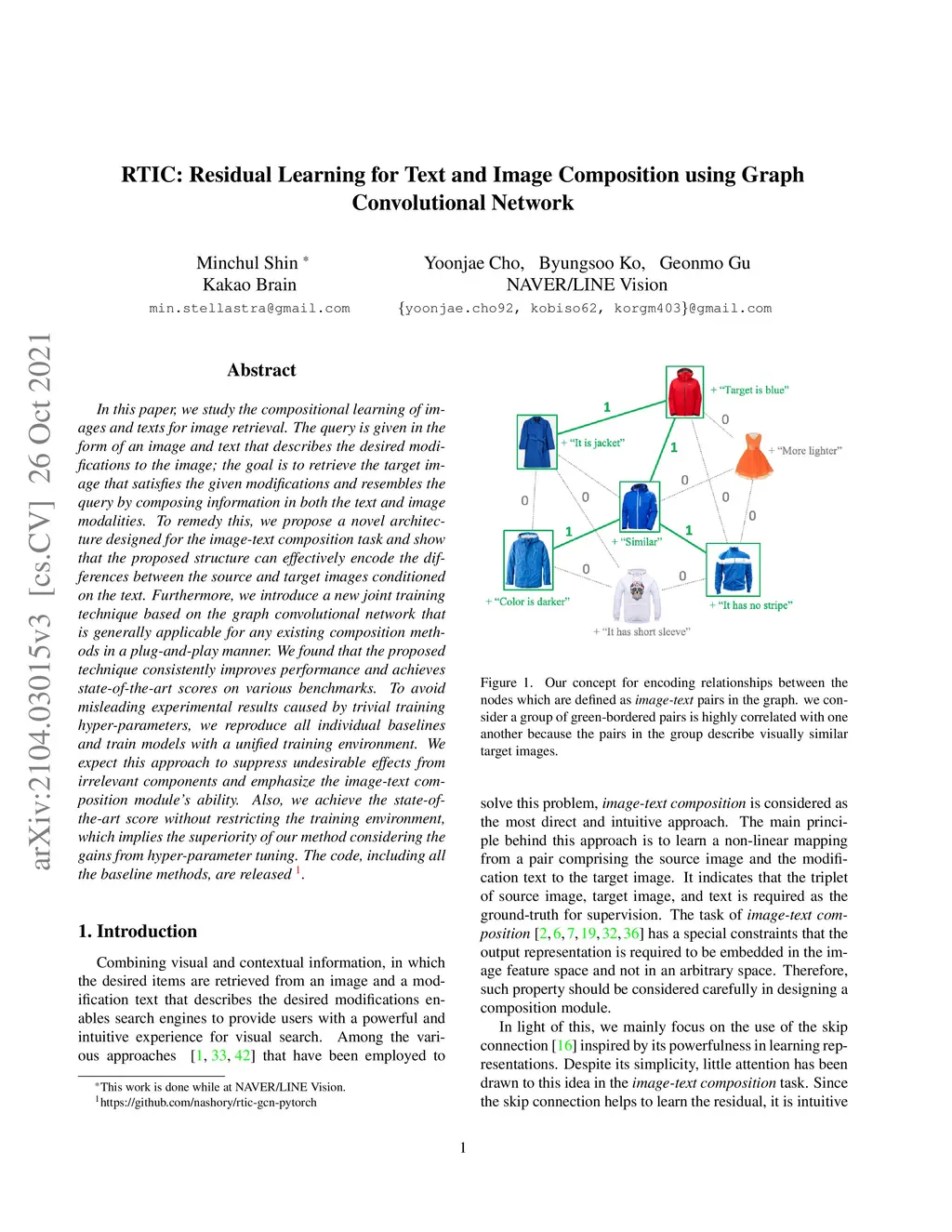 RTIC: Residual Learning for Text and Image Composition using Graph